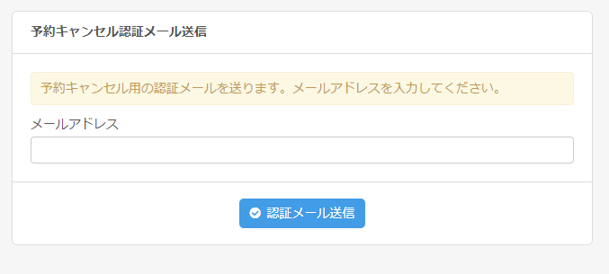 ご予約をいただいた際にご入力いただいた、メールアドレスをご入力ください。
