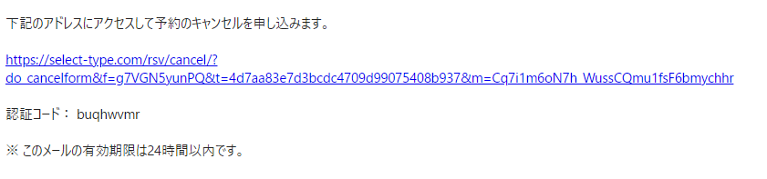 メール本文中の「下記のアドレスにアクセスして予約のキャンセルを申し込みます。」の下にあるURLをクリックします。