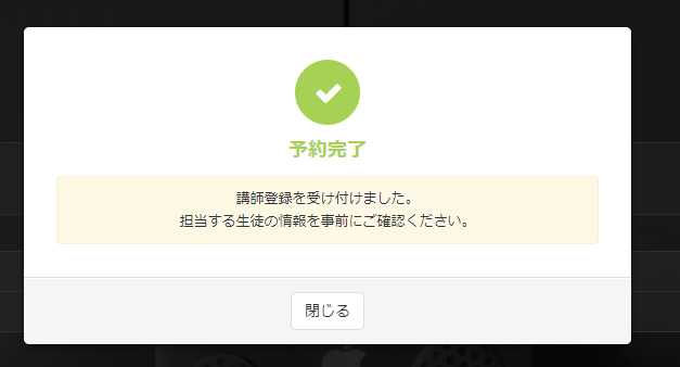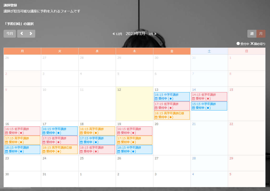 ご希望のクラスが開講されている日時を確認して、講師の登録を行います。